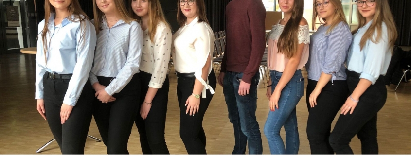 Während ihres dreiwöchigen Aufenthalt in Paderborn führten Schülerinnen aus unserer Partnerschule Centrum Kształcenia Zawodowego i Ustawicznego nr. 3 „Ekonomik“ in Zielona Góra/Polen zusammen mit Schülern des Differenzierungskurses Medieninformatik ein vom Deutsch-Polnischen Jugendwerk gefördertes Projekt durch. In Medienseminaren und Workshops, die im BKSN stattfanden, erwarben die polnischen Schülerinnen mediale Kenntnisse und Fertigkeiten. Im Mittelpunkt des Projektes standen Erkundungen in Paderborner Unternehmen wie in der Garage 33, einem erfolgreichen Existenz-Gründungs-Center im Paderborner Technologiepark, im Bio-Laden „Kernidee“ sowie in der Stadtbibliothek. In der Garage 33 lernten sie und ihre deutschen Mitschüler erfolgreiche Start-up-Unternehmen und deren Projekte kennen und führten mit den Start-up-Gründern Interviews durch. In dem ersten Paderborner Unverpackt-Geschäft „Kernidee“ bekamen sie Einblick in dessen Geschäftsidee und -philosophie, in der Stadtbibliothek nahmen sie die dortigen (digitalen) Angebote für Jugendliche „unter die Lupe“, u.a. die GPS-Tour durch das Haus, das Touchtable mit Apps zum Lernen und Spielen, die VR-Brille oder die vielen Printbücher sowie eBooks und eVideos. Daneben gab es ein kulturelles Rahmenprogramm mit Erkundungen in Paderborn (Dom, Universität, das Heinz-NixdorfMuseumsForum), in Hameln, mit einem Ausflug zu den Externsteinen sowie zur Adlerwarte Berlebeck. Mit sieben Auszubildenden des Bildungsgangs Büromanagement, die im Frühjahr dieses Jahres in Zielona Góra ihre Praktika absolviert hatten, feierten sie zudem ein Wiedersehen.