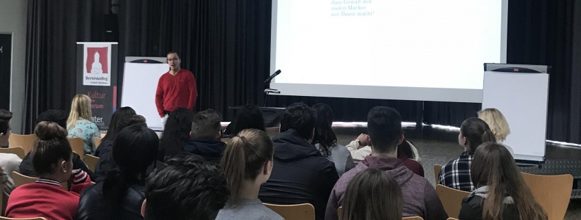 „Was ist heute wirklich cool?“ Diese Frage stellte Christoph Rickels den Schülerinnen und Schülern der HB-Klassen im Rahmen seiner Präventionsveranstaltung zum Thema Gewalt.