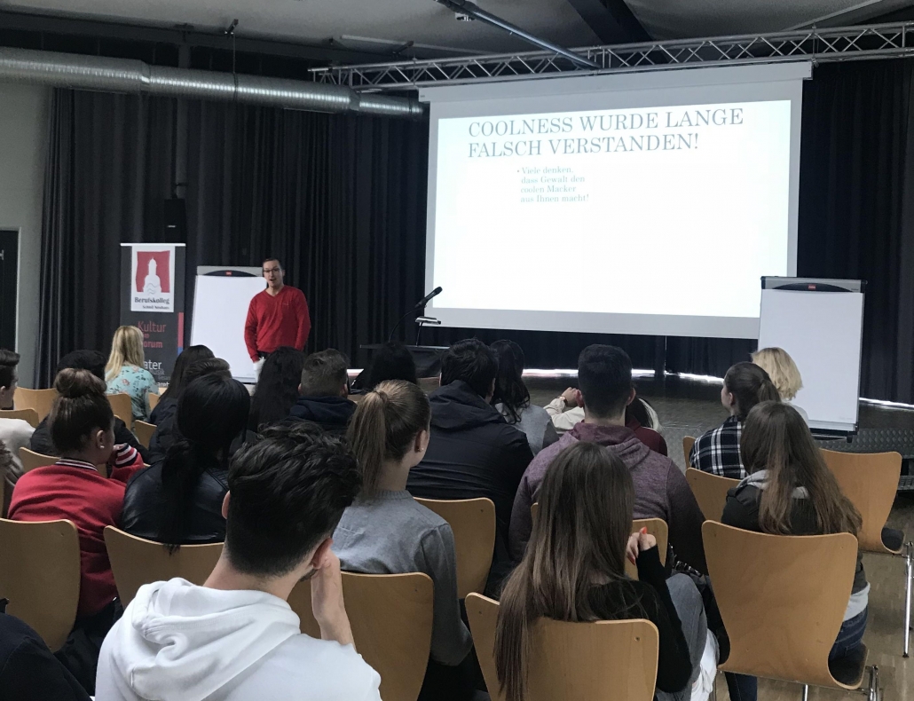 „Was ist heute wirklich cool?“ Diese Frage stellte Christoph Rickels den Schülerinnen und Schülern der HB-Klassen im Rahmen seiner Präventionsveranstaltung zum Thema Gewalt.