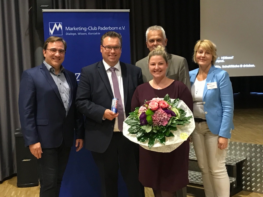 Warum ist Sportsponsoring eigentlich sinnvoll und wie setzt man es erfolgreich um? Diese und andere Fragen beantwortete Lena Homburg, Brand Managerin der Marke effect.der MBG International Premium Brands, in Ihrem Vortrag. Zu dieser Veranstaltung hat der Marketing-Club Paderborn gemeinsam mit dem Berufskolleg Schloß Neuhaus eingeladen. Nach der Begrüßung durch Präsident Frank von Koten spielte Lena Homburg fulminant auf und präsentierte den Mitgliedern des Marketing Clubs und den Studierenden der Fachschule für Wirtschaft in vielen Facetten das Sportspornsoring von MBG. Schwerpunkt des Vortrags war das Engagement beim SC Paderborn und bei Borussia Dortmund, aber auch die Entwicklung im Bereich des E-Sports wurden dargestellt. Fachschulleiterin Tanja Groddeck und Organisator Kai Uhlenbrok planen, die Kooperation mit dem Marketing-Club Paderborn zukünftig zu intensivieren.