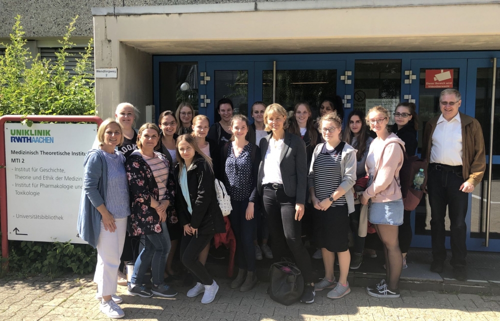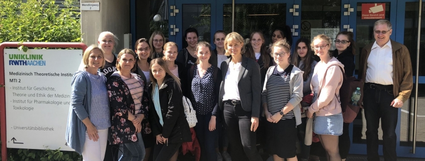 „Lernen mit Kopf, Herz und Hand“, so beschrieb Pestalozzi bereits vor 200 Jahren seinen ganzheitlichen pädagogischen Ansatz. Getreu diesem Motto fuhren 16 Schülerinnen des Berufskollegs Schloss Neuhaus, allesamt angehende Medizinische Fachangestellte, unter der Leitung von Herrn Dr. Pundt (Facharzt für Innere Medizin) und Frau Kirsch (Fachkundelehrerin für Medizin) in das Anatomische Institut der Universitätsklinik Aachen. Die Idee der Exkursion entstand im Rahmen eines Kooperationsgespräches zwischen Ärzten und Lehrkräften des Berufskollegs im vergangenen Jahr. Anknüpfend an den Fachunterricht und unterstützt durch eine Einführungsveranstaltung von Dr. Pundt ging es auf die Reise. Die Schülerinnen konnten im Seziersaal zunächst ihre anatomischen Kenntnisse unter Beweis stellen und Gewicht und Konsistenz einzelner Organe beurteilen. An dieser Stelle war „Anfassen“ ausdrücklich erwünscht und führte bei vielen Schülerinnen zu ganz neuen Eindrücken und einem tieferen Verständnis der Organfunktion. Das Bauchfell beispielsweise kleidet den Bauchraum tatsächlich aus „wie eine Tapete“. Nach der anschließenden Betrachtung der Physiologie ging es weiter zu den verschiedenen Krankheitsbildern, darunter Exponate von Tumorerkrankungen, Leberzirrhosen und Narbengewebe nach einem Herzinfarkt. Eindrucksvoll war auch der Gewichtsunterschied eines Oberschenkelknochens mit und ohne Osteoporose. So vergingen die zweieinhalb Stunden im Anatomischen Institut wie im Fluge, was sicherlich auch an der kurzweiligen, mit Anekdoten gespickten Vortragsweise von Dr. Pundt gelegen hat, der durch langjährigen Kontakt zu einem ehemaligen Studienfreund die Exkursion erst ermöglicht hat. Die Veranstaltung wurde von allen Beteiligten als sehr gelungen und lehrreich beschrieben und soll zukünftig in regelmäßigen Abständen wiederholt werden.