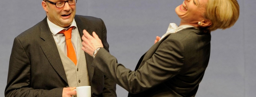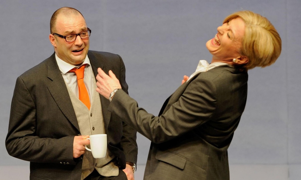 Gleich zwei Vorstellungen, morgens und abends, gab letzte Woche das Bremer Tourneetheater im Forum des BKSN. Mit viel Engagement und Können ermöglichten die Schauspieler*innen den Blick hinter die Fassade von gekündigten Top-Managern, deren zur Schau gestellte Unantastbarkeit nach und nach in sich zusammenfällt.