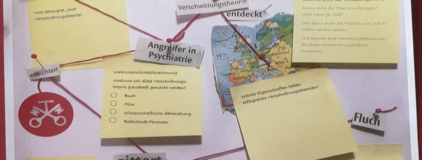 Nach der Führung durften sich die Kursteilnehmer selbstständig in Gruppen über aktuelle Verschwörungstheorien informieren und deren Glaubwürdigkeit beurteilen. Was ist Fiktion und in welchen Verschwörungstheorien steckt vielleicht doch ein Körnchen Wahrheit?