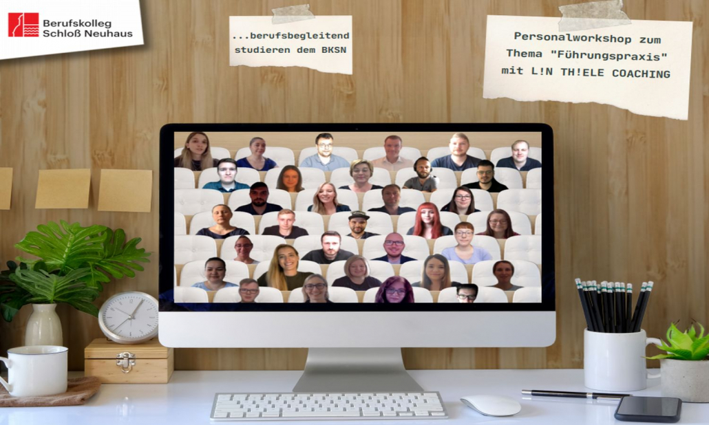 Lin Thorsten Thiele, selbst ehemaliger Fachschüler des Berufskolleg Schloß Neuhaus und seit mehr als 20 Jahren als Führungskraft tätig, führte den Workshop digital durch und brachte aktuelle Themen und Methoden seiner eigenen Führungspraxis in die Diskussion mit den Studierenden ein. Dabei stand der Austausch über eigene Führungserfahrungen sowie -vorstellungen im Vordergrund. In Kleingruppenarbeiten sowie individuellen Selbstreflexionen arbeiteten die Studierenden an ihrem Führungsselbstverständnis, das sie bei (zukünftigen) Führungsaufgaben im beruflichen Alltag sinnvoll nutzen und weiterentwickeln können.