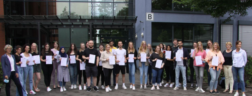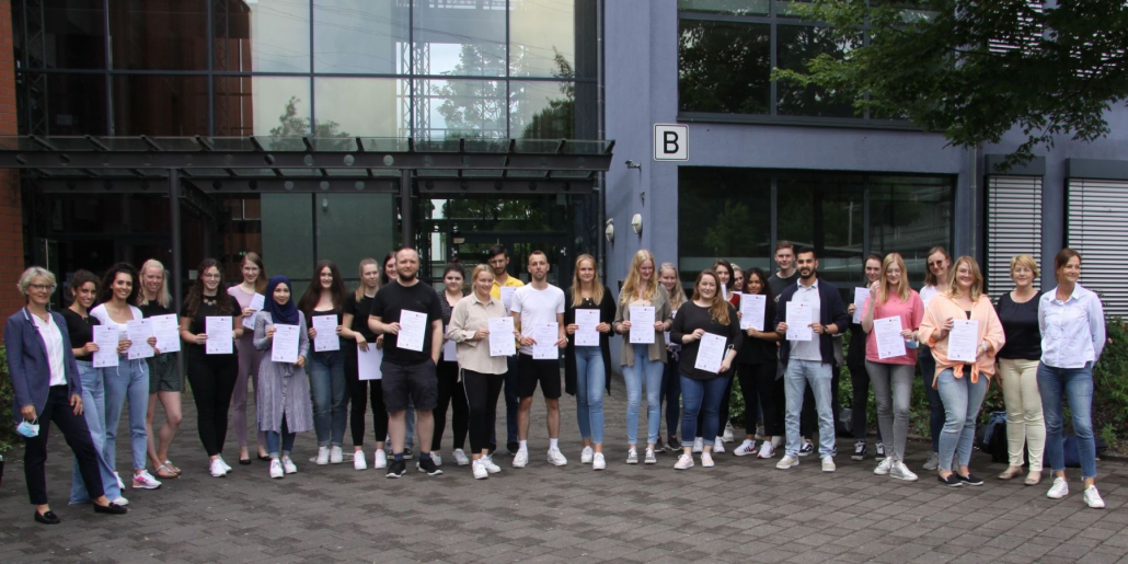 Die Kaufleute für Büromanagement der Mittelstufe am BKSN haben erfolgreich den anspruchsvollen, fachspezifischen Differenzierungskurs für integrierte Unternehmenssoftware SAP ERP absolviert. Dafür gab es am 29. Juni 2021 ein Zertifikat und viel Lob von der Bildungsgangleiterin Tanja Groddeck und den Fachlehrerinnen Nicole Ullrich und Lucia Westhoff.