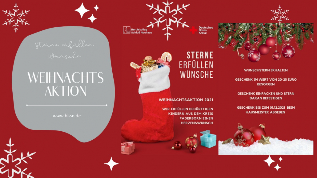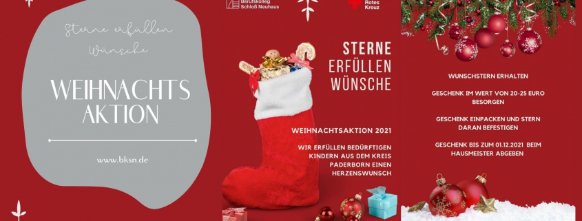 Schüler und Schülerinnen aus der Klasse BK19b haben zusammen mit ihren Lehrern (Frau Cantzen und Herrn Kuhlenkamp) überlegt im Rahmen des FreiDay Projektes die Weihnachtsaktion „Sterne erfüllen Wünsche“ des Deutschen Roten Kreuzes zu unterstützen.