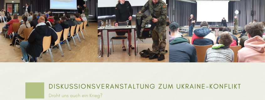 Hauptmann Lena Lehmann und Ihr Offiziers-Gatte waren zu Gast und standen den anwesenden SuS Rede und Antwort zum Ukraine-Konflikt und der damit zusammenhängenden Zeitenwende.