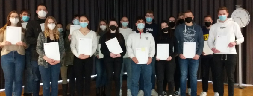 Am 21. Dezember 2021 übergab Schulleiter Matthias Groß im Forum unseres Berufskollegs das KMK-Fremdsprachenzertifikat an Auszubildende der Berufe Bankkauffrau/-mann sowie Kauffrau/-mann für Büromanagement.