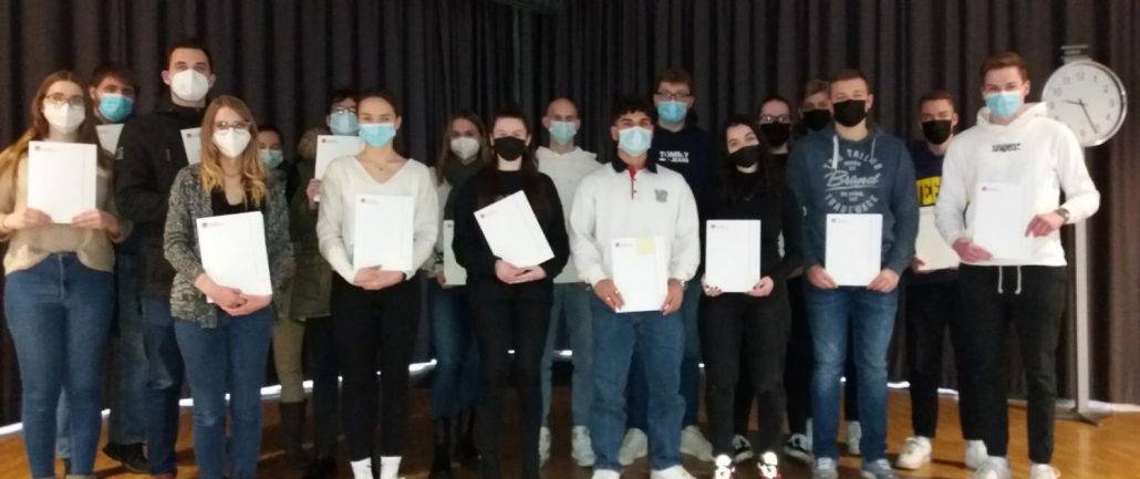 Am 21. Dezember 2021 übergab Schulleiter Matthias Groß im Forum unseres Berufskollegs das KMK-Fremdsprachenzertifikat an Auszubildende der Berufe Bankkauffrau/-mann sowie Kauffrau/-mann für Büromanagement.