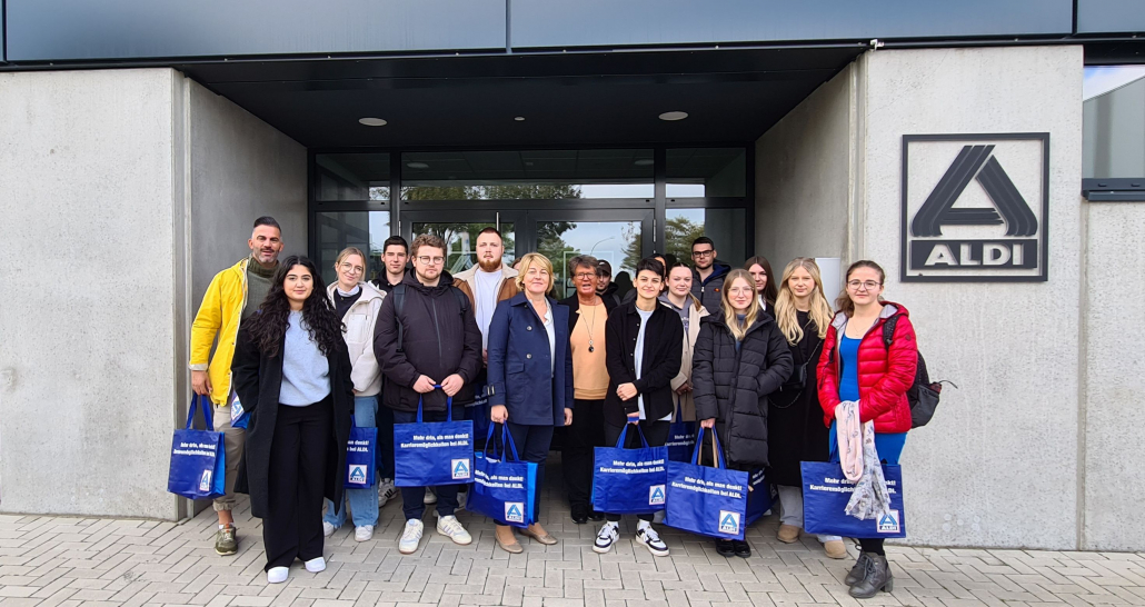 Direkt nach den Herbstferien organisierten die beiden Auszubildenen Marie Göddecke und Ester Simon für ihre Klasse BK22a (Kaufleute für Büromanagement) eine sehr interessante Betriebsbesichtigung in ihrem Ausbildungsunternehmen ALDI.