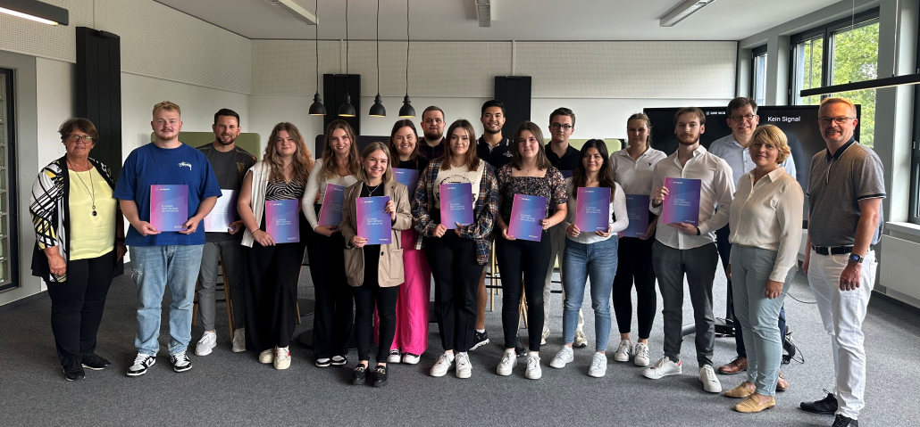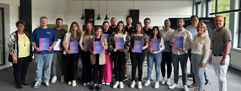 Am 15.08.2023 konnte der stellvertretende Schulleiter des BKSN, Herr Norbert Damke, elf Auszubildende aus den Bereichen Banken und Büromanagement sowie drei Studierende der Fachschule für Wirtschaft mit dem Zertifikat Kaufmann/Kauffrau International auszeichnen und die Europässe übergeben.