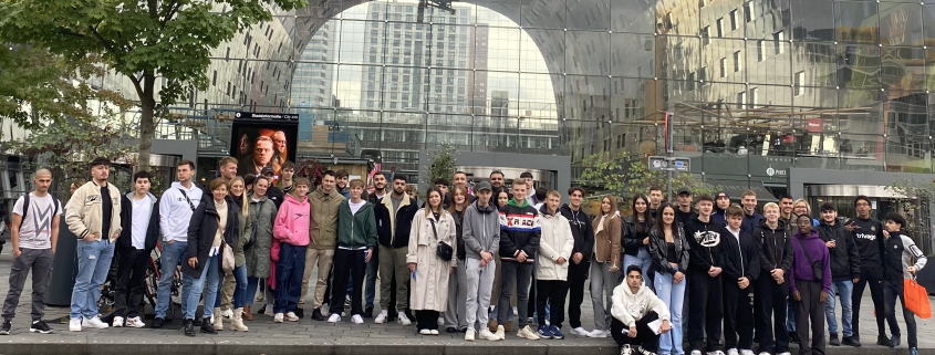 Vier Klassen der Zweijährigen Berufsfachschule starteten letzte Woche zur Klassenfahrt nach Rotterdam. Die Schülerinnen und Schüler sowie die begleitenden Lehrkräfte erwartete ein buntes Programm in den Metropolen unseres Nachbarlandes. Neben Sehenswürdigkeiten der Hafenstadt Rotterdam und der kulinarischen Vielfalt unternahm die Gruppe Tagesausflüge nach Den Haag/Scheveningen und Amsterdam. Die Hauptstadt konnten die Oberstüfenschülerinnen und -schüler während einer Grachtenfahrt vom Wasser aus sowie aus luftiger Höhe vom A`DAM Lookout betrachten. Ein besonderes Highlight war der Animationsflug über Holland- 5D-Effekt und Sensory Seats machten dieses Abenteuer möglich.