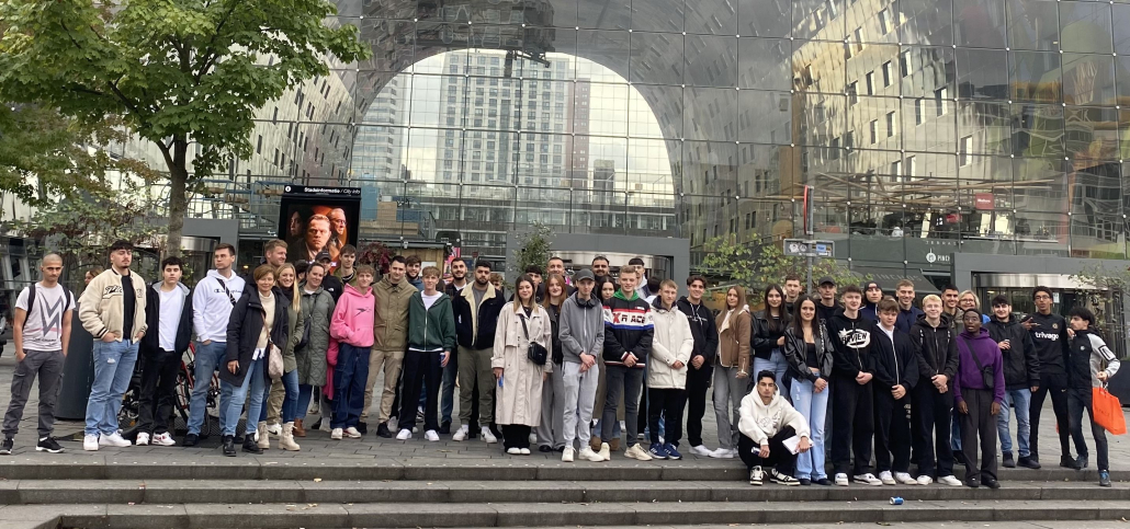 Vier Klassen der Zweijährigen Berufsfachschule starteten letzte Woche zur Klassenfahrt nach Rotterdam. Die Schülerinnen und Schüler sowie die begleitenden Lehrkräfte erwartete ein buntes Programm in den Metropolen unseres Nachbarlandes. Neben Sehenswürdigkeiten der Hafenstadt Rotterdam und der kulinarischen Vielfalt unternahm die Gruppe Tagesausflüge nach Den Haag/Scheveningen und Amsterdam. Die Hauptstadt konnten die Oberstüfenschülerinnen und -schüler während einer Grachtenfahrt vom Wasser aus sowie aus luftiger Höhe vom A`DAM Lookout betrachten. Ein besonderes Highlight war der Animationsflug über Holland- 5D-Effekt und Sensory Seats machten dieses Abenteuer möglich.