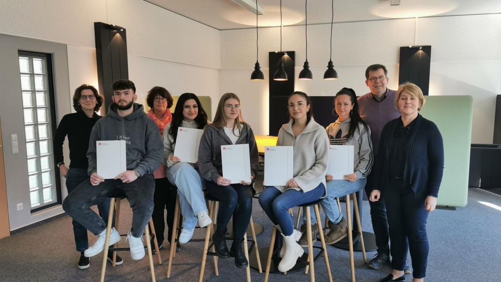 In dieser Woche wurden den Kaufleuten für Büromanagement die KMK-Zertifikate überreicht. In dieser freiwilligen Fremdsprachenprüfung können die Auszubildenden ihre Englischkenntnisse in dem Bereich Wirtschaft und Verwaltung unter Beweis stellen. Das haben sie nicht nur erfolgreich gemeistert, sondern auch mit einem tollen Ergebnis von durchschnittlich 84 von 100 in der schriftlichen und 29 von 30 in der mündlichen Prüfung. Wir gratulieren herzlichst zu dem zusätzlichen Zertifikat.