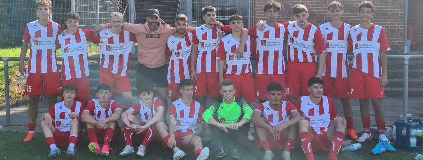 In der Mittagssonne zeigten die in rotweiß gekleideten Berufsschüler aus den Jahrgängen 2005-2007 noch einmal Charakter und besiegten die Gesamtschule Elsen mit 5:3.