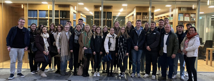 Die Auszubildenden zu Verwaltungsfachangestellten der Klassen V-21a und V-21b konnten auch in diesem Jahr wieder im Rahmen des Unterrichts in verwaltungsrechtlichem Handeln mit Frau Ganser und Herrn Klingbeil zum OVG Münster fahren. An diesem Tag wurden zwei Fälle aus dem öffentlichen Recht mit Bezug zum Baurecht verhandelt. Anschließend konnte noch das Gebäude des Oberverwaltungsgerichts und die Stadt Münster ein wenig erkundet werden, bevor es wieder zurück nach Schloß Neuhaus ging.