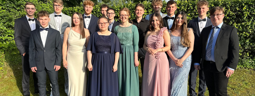 Im Beruflichen Gymnasium für Informatik haben in diesem Schuljahr insgesamt 16 Schülerinnen und Schüler die Abiturprüfung erfolgreich abgelegt und die Allgemeine Hochschulreife erworben. Besonders gefällt der Klassenlehrerin Carmen Klee, dass die Schülerinnen und Schüler gute bis sehr gute Leistungen erbracht haben und dass die Absolventen den nächsten beruflichen Schritt vollziehen und in ein Studium, in ein Duales Studium oder in eine Duale Ausbildung wechseln. Die Absolventen des Beruflichen Gymnasiums mit den Schwerpunkten Mathematik und Informatik haben sich dabei überwiegend für zukunftsorientierte Berufsfelder im MINT-Bereich entschieden.