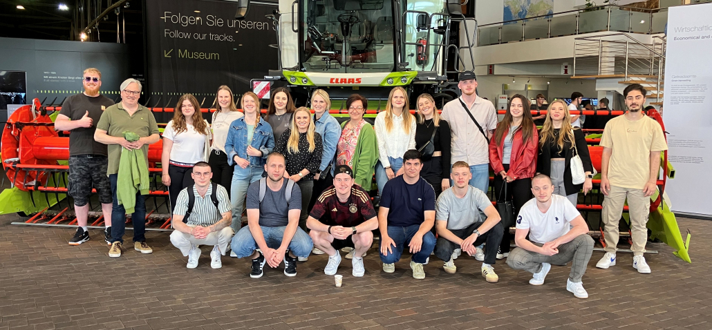 Die diesjährigen Klassenfahrt der FS22a und FS22b führte ins westfälische Münster. Auf dem Hinweg stand ein Besuch der Produktion des Weltmarktführers für Landmaschinen in Harsewinkel, der Firma Claas auf dem Programm. Hier konnte das theoretisch erlangte Wissen in der Fachschule für Wirtschaft mit der betrieblichen Praxis verknüpft werden. Der erste Abend endete gemeinsam mit den begleitenden Lehrkräften Bettina Klüner, Stefanie Ganser und Karsten Floren im Lokal Mocca D’Or.