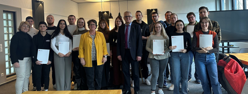 Die Schulleitung lobte die Bereitschaft der Auszubildenden, sich dieser freiwilligen Zusatzprüfung zu stellen und diese mit so hervorragenden Leistungen zu bestehen. Dem konnten sich Frau Groddeck und Herr Welp als jeweilige Bildungsgangleitung und Frau Heinich als prüfende Lehrkraft nur anschließen.