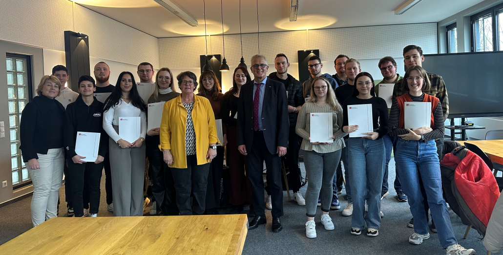 Die Schulleitung lobte die Bereitschaft der Auszubildenden, sich dieser freiwilligen Zusatzprüfung zu stellen und diese mit so hervorragenden Leistungen zu bestehen. Dem konnten sich Frau Groddeck und Herr Welp als jeweilige Bildungsgangleitung und Frau Heinich als prüfende Lehrkraft nur anschließen.