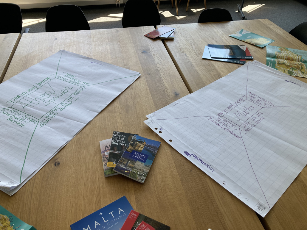 Die Teilnehmenden hatten dabei die Gelegenheit, sich in aktivierenden Formaten näher kennenzulernen und ihre Gedanken sowie Erwartungen zum Auslandspraktikum auszutauschen. Zudem wurden der Umgang mit (interkulturellen) Vorurteilen reflektiert sowie eigene Assoziationen mit der jeweiligen Kultur des Gastlands in englischer Sprache präsentiert. Im Anschluss standen auch praktische Themen wie der Praktikumsbericht, Überlegungen zu den ersten Tagen im Praktikumsbetrieb und die weiteren Anliegen der Schüler:innen im Fokus.