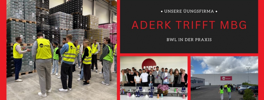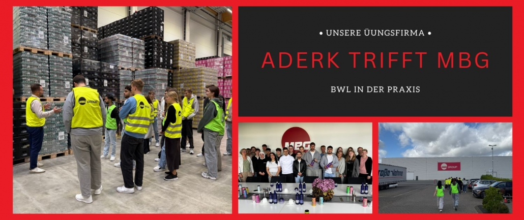 Im Rahmen der Betriebserkundung erhielten die Schülerinnen und Schüler der ADERK Getränke GmbHmspannende Einblicke in unterschiedliche Unternehmensbereiche. Frau Stangl stellte den Bereich Personal sowie das Unternehmen allgemein vor, Frau Stuckenbrock sprach über das Marketing, Frau Sommechan informierte zum Thema Handel und Herr Wibbe erläuterte die Logistik bei MBG.