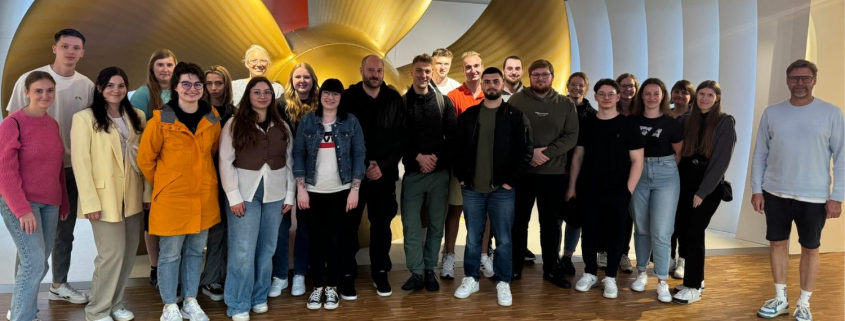 In der Meyer Werft in Papenburg erfuhren die Studierenden wesentliche Meilensteine der Unternehmensgeschichte und die Schritte von der Planung bis zur Fertigstellung unterschiedlicher Arten von Schiffen. Besonderes Highlight war das fast fertiggestellte Kreuzfahrtschiff Disney Destiny, das bereits schwimmend im Dock gesehen werden konnte. Anschließend ging die Reise weiter nach Wilhelmshaven. Dort wird der Besuch des Marinemuseums und die Erkundung von Stadt und Strand im Mittelpunkt stehen.