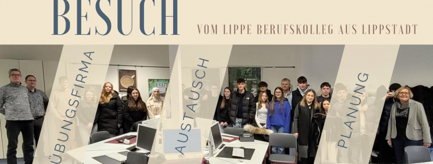 Das Berufskolleg Lippe baut derzeit eine eigene Übungsfirma „Lippe….“auf, unterstützt von den engagierten Lehrern Herrn Christian Loske und Herrn Lars Juchhoff. Im November hatten wir die Gelegenheit, beide Lehrer bei uns zu begrüßen und spannende Einblicke sowie Ideen für die Weiterentwicklung unserer Übungsfirmen auszutauschen.