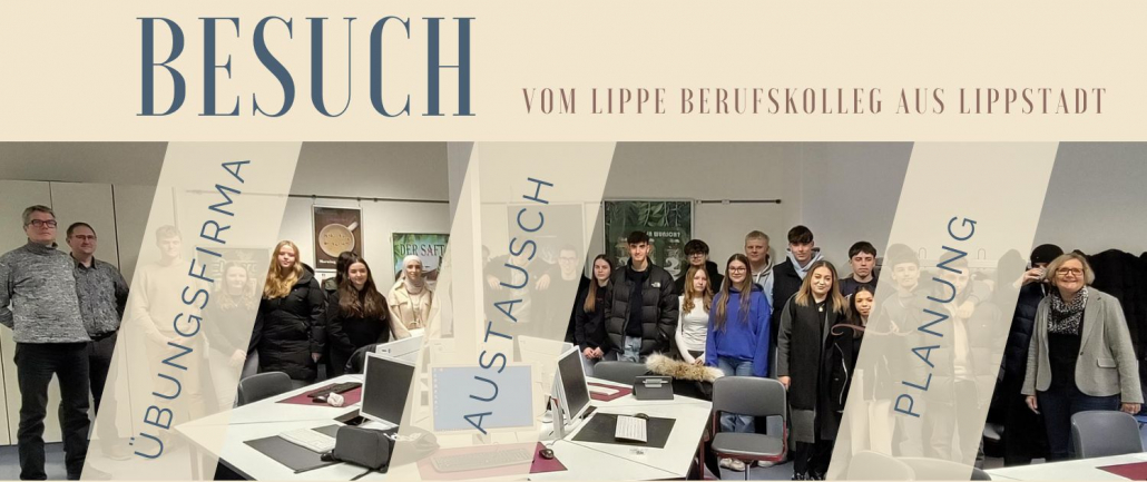 Das Berufskolleg Lippe baut derzeit eine eigene Übungsfirma „Lippe….“auf, unterstützt von den engagierten Lehrern Herrn Christian Loske und Herrn Lars Juchhoff. Im November hatten wir die Gelegenheit, beide Lehrer bei uns zu begrüßen und spannende Einblicke sowie Ideen für die Weiterentwicklung unserer Übungsfirmen auszutauschen.