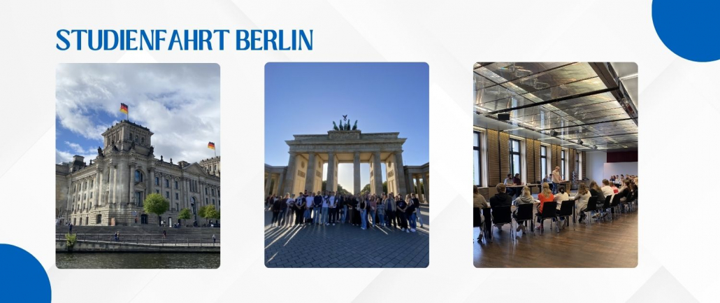 Am Montag, den 15. September 2025 ging es los: Um 8.00 Uhr starteten die Klassen V-23A und V-23B vom BKSN im gemütlichen Reisebus in Richtung Hauptstadt. Während unsere Fahrt zunächst noch von Sturzregen und Gewitter ausgebremst wurde, begleitete uns spätestens nach dem ersten (inoffiziellen) Programmpunkt des Tages – eine Snack-, Toiletten- und Geschichtspause an der ehemaligen Deutsch-Deutschen Grenze – die Sonne. Über die Straße des 17. Junis und den Potsdamer Platz erreichten wir schließlich das Aletto-Hotel am Gleisdreieck. Nach einer kurzen Pause – zum Zimmer beziehen und orientieren – machten wir uns auch schon direkt auf den Weg zum ersten (offiziellen) Programmpunkt. Im Unterricht hatten wir uns schon in der vorherigen Woche vorbereitet, um uns am Denkmal für die ermordeten Juden Europas und dem Denkmal für die im Nationalsozialismus ermordeten Sinti und Roma Europas gegenseitig wichtige Daten und Fakten zu präsentieren. Anschließend nutzten wir noch das schöne Wetter, um am Brandenburger Tor ein Gruppenfoto zu machen und den Abend in Kleingruppen nach Lust und Laune zu gestalten.