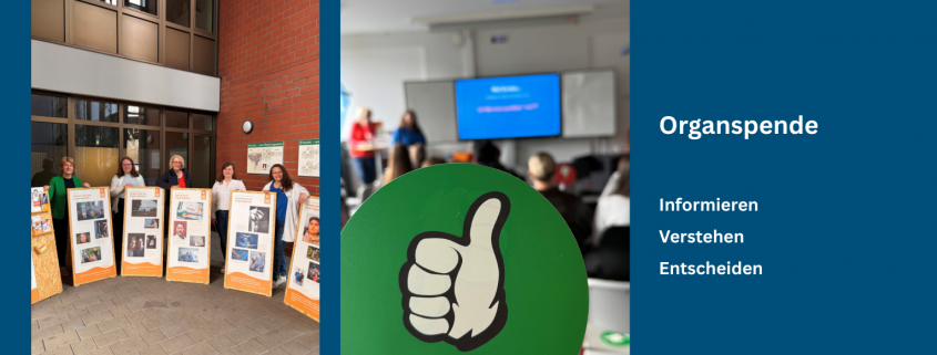Im Foyer ist aktuell eine Wanderausstellung aufgebaut. Sie zeigt persönliche Geschichten von Organspendern und -empfängern sowie den Ablauf einer Organspende – von der medizinischen Diagnose über die Entscheidung bis hin zur Transplantation. Ergänzt wird dies durch anschauliche Hintergrundinformationen. Die Ausstellung steht noch bis nach Ostern zur Verfügung. In der Präsentation wurden zentrale Inhalte wie der genaue Ablauf einer Organspende, die Zusammenarbeit innerhalb Europas sowie unterschiedliche Entscheidungsmodelle (Zustimmungs-, Entscheidungs- und Widerspruchslösung) verständlich erklärt. Auch aktuelle Zahlen und Entwicklungen wurden thematisiert.