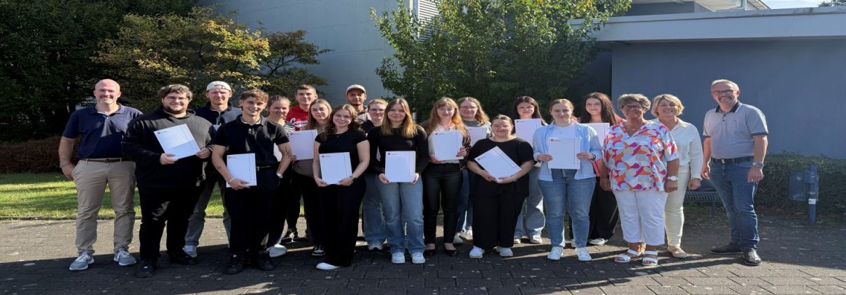 Zertifikatsübergabe „Kaufmann/Kauffrau International“ am BKSN Mit einer feierlichen Zeremonie würdigte das Berufskolleg Schloss Neuhaus die diesjährigen Absolventinnen und Absolventen der Zusatzqualifikation „Kaufmann/Kauffrau International“. Insgesamt 19 Teilnehmende aus den Bildungsgängen Bankkaufleute, Kaufleute für Büromanagement sowie der Fachschule für Wirtschaft erhielten ihr Zertifikat, das ihnen hervorragende Leistungen im internationalen Kontext bescheinigt. Organisiert wurde das Projekt von Ulrike […]