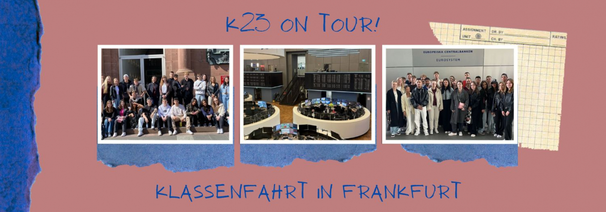 Vom 6. bis 9. Mai 2025 waren die Bankfachklassen K-23 mit Frau Menke und Herrn Welp auf Klassenfahrt in Frankfurt. Neben interessanten Besuchen bei der Fondsgesellschaft Union Investment, der Frankfurter Wertpapierbörse und der Europäischen Zentralbank stand auch ein Escape Room auf dem Programm. Super Wetter, tolle Stimmung, viele neue Eindrücke – eine rundum gelungene Fahrt!