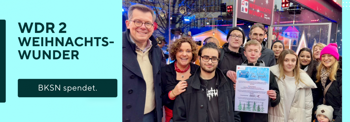 Die BKSN-Schulgemeinschaft hat 850,00 € für die Aktion WDR2 Weihnachtswunder gesammelt. Gestern erfolgte bei Moderatorin Steffi Neu die Übergabe der Spende im WDR2 Glashaus vor dem Paderborner Dom. Vielen Dank für die große Spendenbereitschaft zum WDR2 Weihnachtswunder. Großartig!