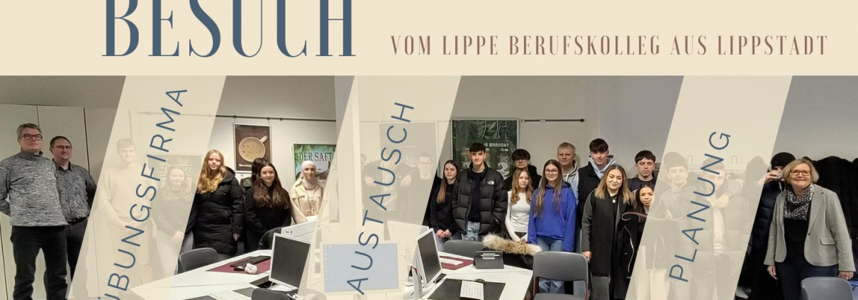 Austausch zwischen dem BK Lippe und unserem Berufskolleg: Praxisorientiertes Lernen in der Übungsfirma Das Berufskolleg Lippe baut derzeit eine eigene Übungsfirma „Lippe….“auf, unterstützt von den engagierten Lehrern Herrn Christian Loske und Herrn Lars Juchhoff. Im November hatten wir die Gelegenheit, beide Lehrer bei uns zu begrüßen und spannende Einblicke sowie Ideen für die Weiterentwicklung unserer […]