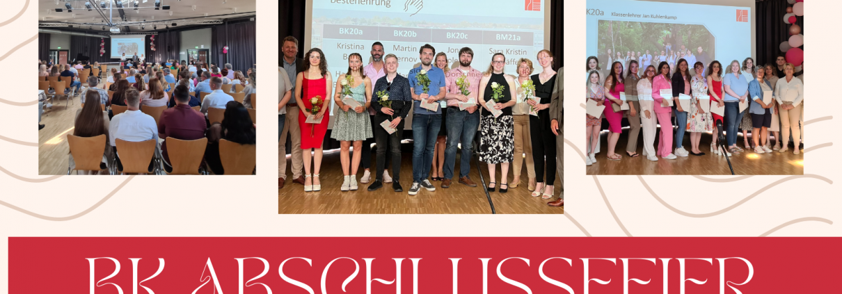 Am 19. Juni fand die BK-Abschlussfeier statt. Organisiert von den vier Klassenlehrern der Oberstufe (Töws-Meier, Kuhlenkamp, Cirrincione und Eilinghoff) moderierte Herr Cirrincione vor über 100 Gästen galant durch das kurzweilige Programm. Frau Klüner gab drei Klavierstücke zum Besten und Herr Kuhlenkamp überraschte seine Klasse mit einem kleinen Rückblick-Video. Der Schulleiter Herr Groß und die Bildungsgangleiterin […]